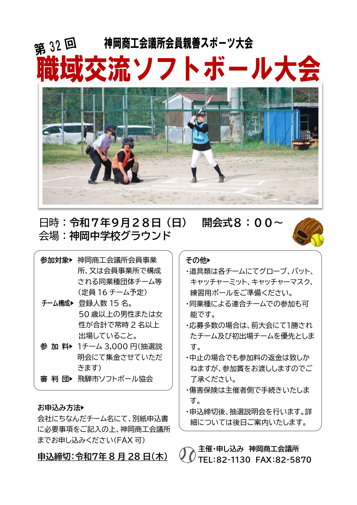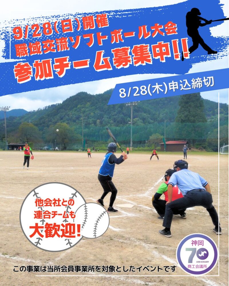 9月28日(日)に当所主催で開催する「第32回 職域交流ソフトボール大会」の参加事業所を現在募集中です!(このイベントは当所会員事業所対象となっております)